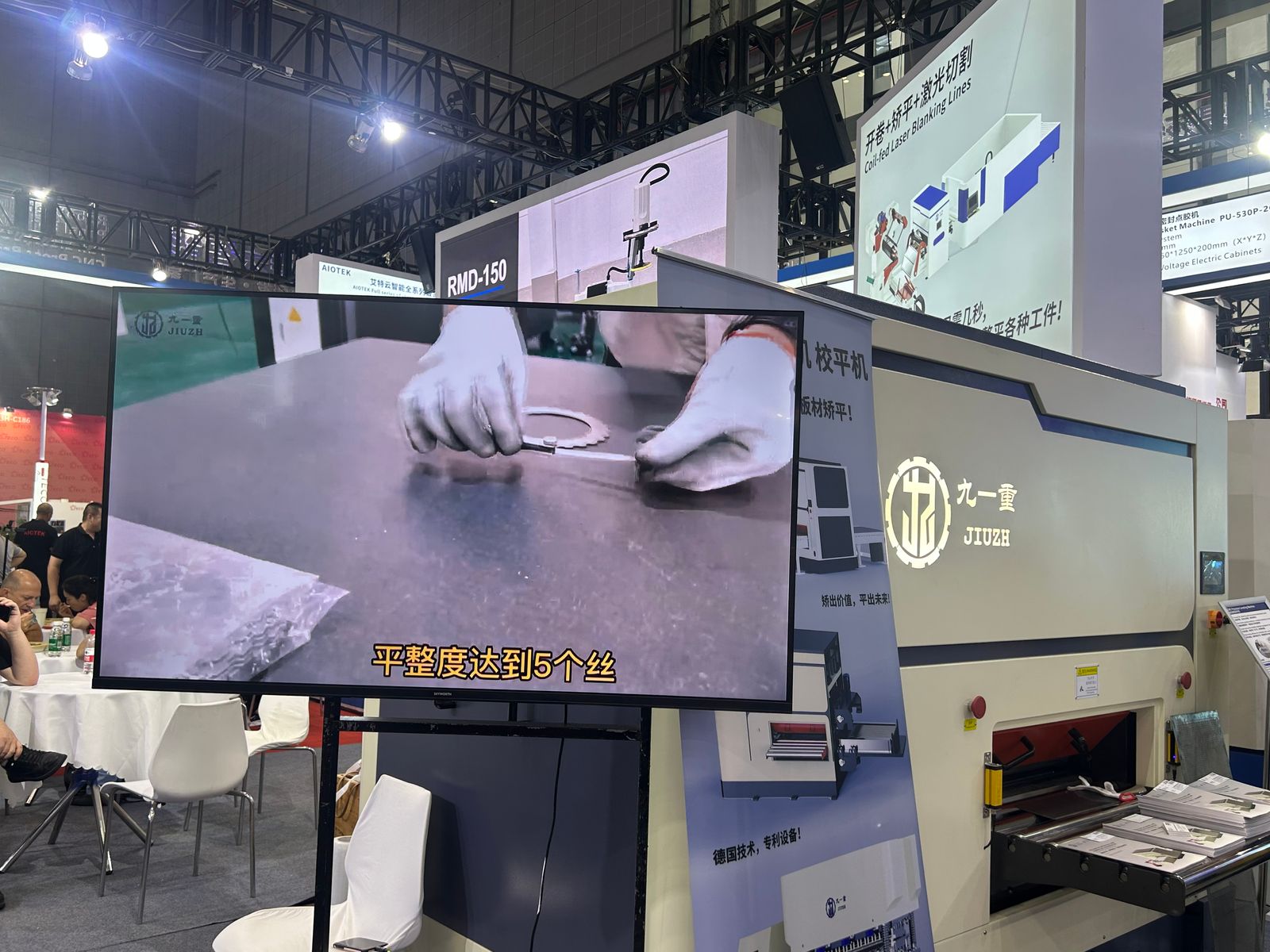 本次参展,广东九重重点展出新一代激光卷料切割线与六重式智能矫平机两大核心产品。前者集成公司最新专利技术(授权公告号 CN 119056911 B),通过开卷、整平、切割全流程自动化协同,将加工误差控制在微米级,辊系更换时间较传统设备缩短 70%,现场模拟汽车零部件生产场景中,展现出每小时 45 吨的高效产能。后者则搭载伺服液压驱动系统与智能润滑模块,运行能耗较行业平均水平降低 32%,单台设备年节电可达 28 万度,精准契合工博会首次设立的 “绿色低碳展区” 核心理念。